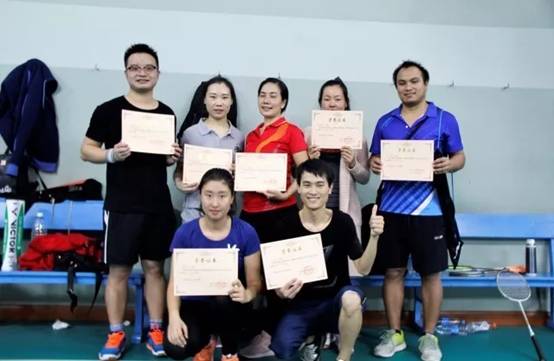 赛场上,选手们生龙活虎,有来有往,将扣杀,劈吊,小球,高远球等技术施展得淋漓尽致。赛场外,拉拉队员们齐声鼓掌喝彩,为比赛增加了紧张热烈的竞技氛围。最终,硕士代表李大海赢得男单冠军;博士代表勾高顺,艾文会赢得男双冠军;博士代表邱焕焕赢得女单冠军;硕士代表黄中英,程令令赢得女双冠军;博士代表罗强华,王乐美赢得混双冠军;硕士代表田时瑞获得最有价值球员称号;硕士代表郝党丽等获得参赛奖。