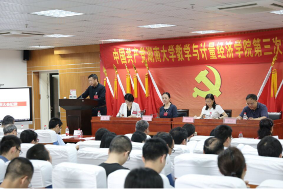 数学与计量经济学院第三次代表大会在数学院207报告厅隆重召开。大会主题是:高举中国特色社会主义伟大旗帜,以习近平新时代中国特色社会主义思想为指导,深入贯彻党的十九大和学校第九次党代会精神,带领学院共产党员和全体师生员工,不忘育人初心,牢记时代使命,充分把握“双一流”建设的大好机遇,团结协作,攻坚克难,为建设国内一流的数学学科而努力奋斗。大会由数学与计量经济学院党委副书记熊雅同志主持,中共偷拍自拍