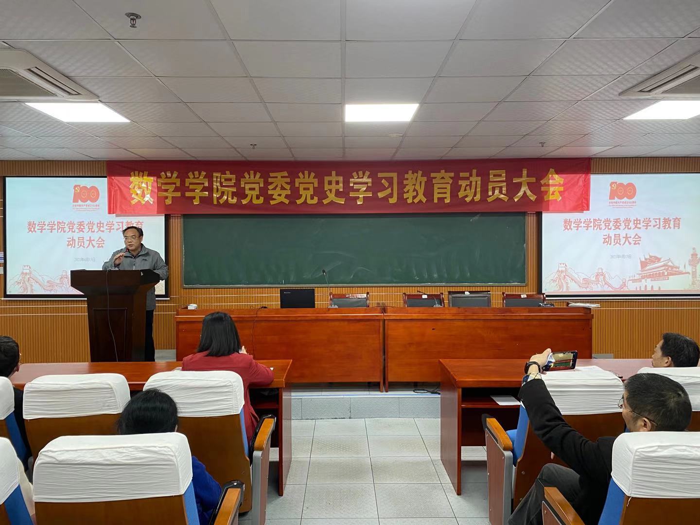 随后,党委副书记熊雅同志部署学院党史学习教育重点任务及推进计划。学院按照“学百年党史、知红色校史、育时代新人、建一流大学和一流数学学科”四个版块协同推进党史教育活动,认真做好“党员自学”、“集中学习研讨”、“专题党课”等17项重点任务,结合学院实际,开展“党务干部专题培训”、“数学课程思政建设”、“数学人精神凝练”等特色活动。