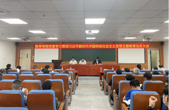 于数学院楼207报告厅召开学习贯彻习近平新时代中国特色社会主义思想主题教育动员大会。学校主题教育第三指导组成员蔡建国、李海涛、靳琳三位老师出席,蔡建国代表指导组作指导讲话。学院党委书记蒋月评作动员讲话,学院党委副书记熊雅主持会议。学院全体教师党员、学生党员代表80余人参加会议。