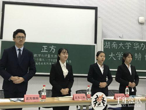 “华为杯”2017大学生校园辩论赛第三轮在研究生院楼C302教室举行,本次辩论赛双方为正方数学与计量经济学院,反方南校区工商管理学院,双方以“进一步强化‘一个中国’意识,增强香港归属感更需要依靠官方力量还是非官方力量”为辩题展开了一场精彩的辩论。最终反方三辩获得本场比赛的最佳辩手,数学院获得本场比赛的胜利,进入四强。