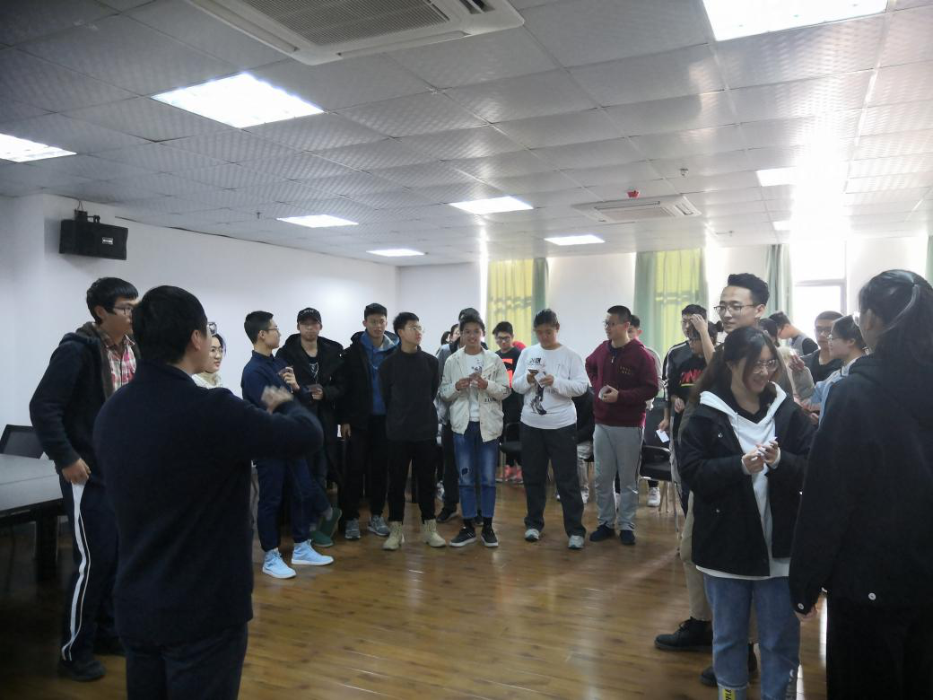 本次活动由韩笑天老师主持,首先韩老师就本次活动的目的向大家说明。同学们刚刚步入大一,对大学生活充满疑惑与憧憬,大学是与之前完全不同的生活学习阶段,很少人有自己的目标并且对自己有严格的要求。大多数同学都对大学生活的开始感到不适应,特别是在人际交往方面。此次教学实践活动的目的让同学们走出自我,融入集体,从而让同学们快乐的学习和生活。