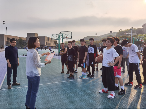 第二场,本科生三队VS教师队。一开局教师队比分领先,学生队后来发力,教师队也越战越勇,战况激烈。双方比分持续胶着。比赛在最后一刻打成平局。教师队提出打加时赛10分钟,加时赛大家战意愈加浓厚,最终教师队以64-61比分险胜学生队。