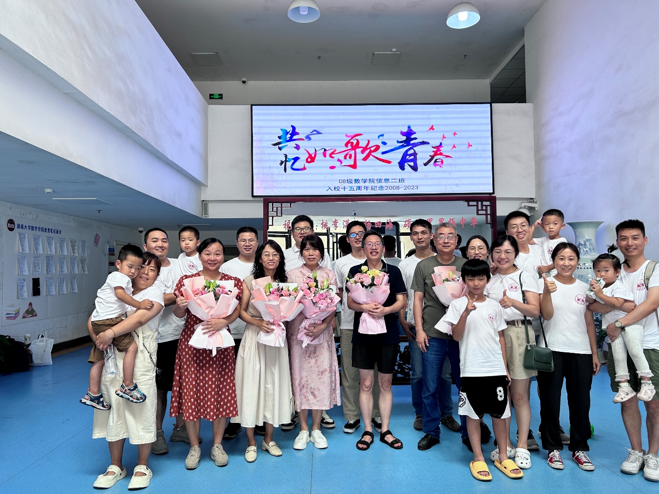 8月19日至20日周末,信息与计算科学2008级2班的同学回到母校举行了入学15周年的“共忆如歌青春”聚会活动。去年他们原本商量好组织毕业十周年纪念活动,因为疫情原因而未能成行。19日下午,他们来到偷拍自拍