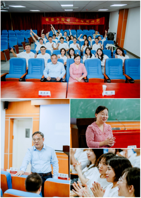 院楼207教室组织召开座谈会议,蒋月评书记代表学院对2000级校友本科毕业十周年重返母校表示热忱欢迎和衷心祝愿,并介绍了学院十年来的发展与成就,引发了校友们的强烈共鸣,姚兰老师表示对此次聚会非常期待和激动,希望大家志存高远、努力工作、珍惜同学情谊。