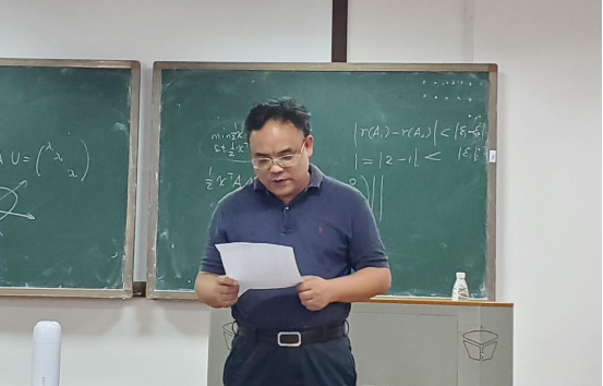 大会第三项,院主管研究生二作副院长郭上江教授介绍学院情况。郭老师开门见山,提出他的招生观念:好老师、好方向。他讲到,所谓最优选择,即知道自己喜欢什么、需要什么。选择好专业、适合自己的专业,可以找到好老师和好方向。另外,院里硕博导师将近七十人,导师对学生十分重视并注重其最合适的发展,那么最优秀师资教最好学生,加上学生的最优选择,就创造了双赢。之后,郭老师就招考政策、奖学资助、学习生活环境、基地平台、师资力量、学术团队及研究方向、近五年科研成果等七个方面进行了详细阐述。最后,郭老师建议同学们,对研究生课程,现在就可以打基础,数学也是一门永远在打基础的学科,正所谓学无止境就是这样;勤奋+信心+准备+和老师的沟通,会让大家体会到数学无限的快乐!