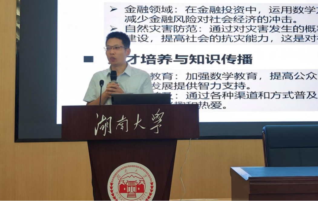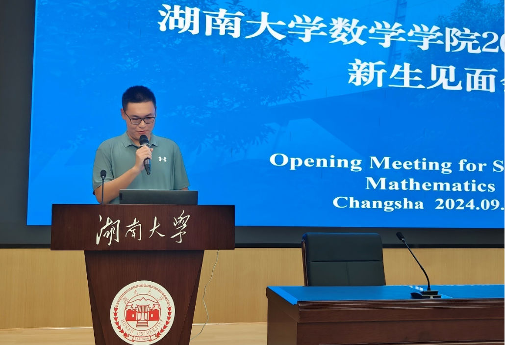 黄勇老师向开启新征程的同学们表示热烈祝贺和欢迎,并分别从学院数学学科的发展历史、数学在当今社会的重要性和新时代数学人肩负的责任三个方面展开对新生的殷切嘱托。学院数学学科拥有悠久的学科历史及深厚的学术底蕴,获得了诸多高光和荣耀,在多年地努力下,数院师资队伍不断壮大、人才培养体系不断完善、科学研究成果享誉国际。学院在致力于培养数学创新和传承数学文明、拓展人类知识边界、聚焦人才培养与知识传播、面向服务国家重大战略需求层面持续发力。黄勇老师对新生们提出殷切期望,希望同学们能够传承湖大数院基因,面向未来、拼搏进取、善于学习,立担当之志、厚致远之基、修立身之德、奋力书写为中国式现代化挺膺担当的湖大数学新篇章。